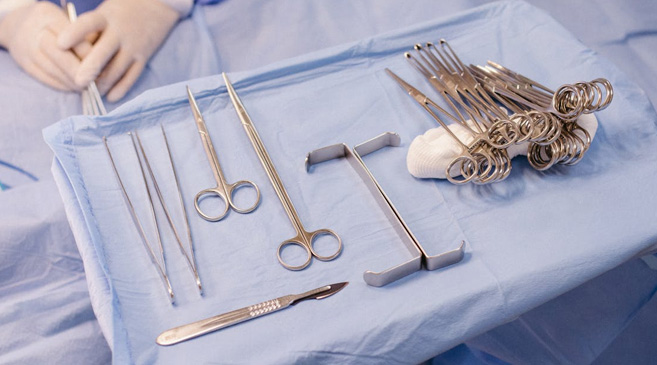 Damaged surfaces of the knee joint are replaced with an artificial implant.